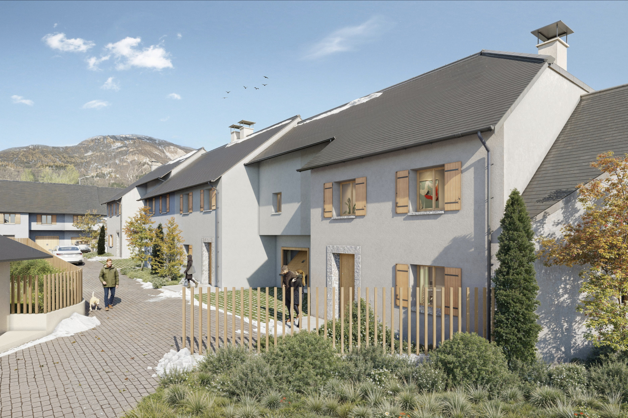 Les Terrasses de l’Ours proposent des maisons modernes à l’architecture sobre et élégante, parfaitement intégrées à leur environnement.