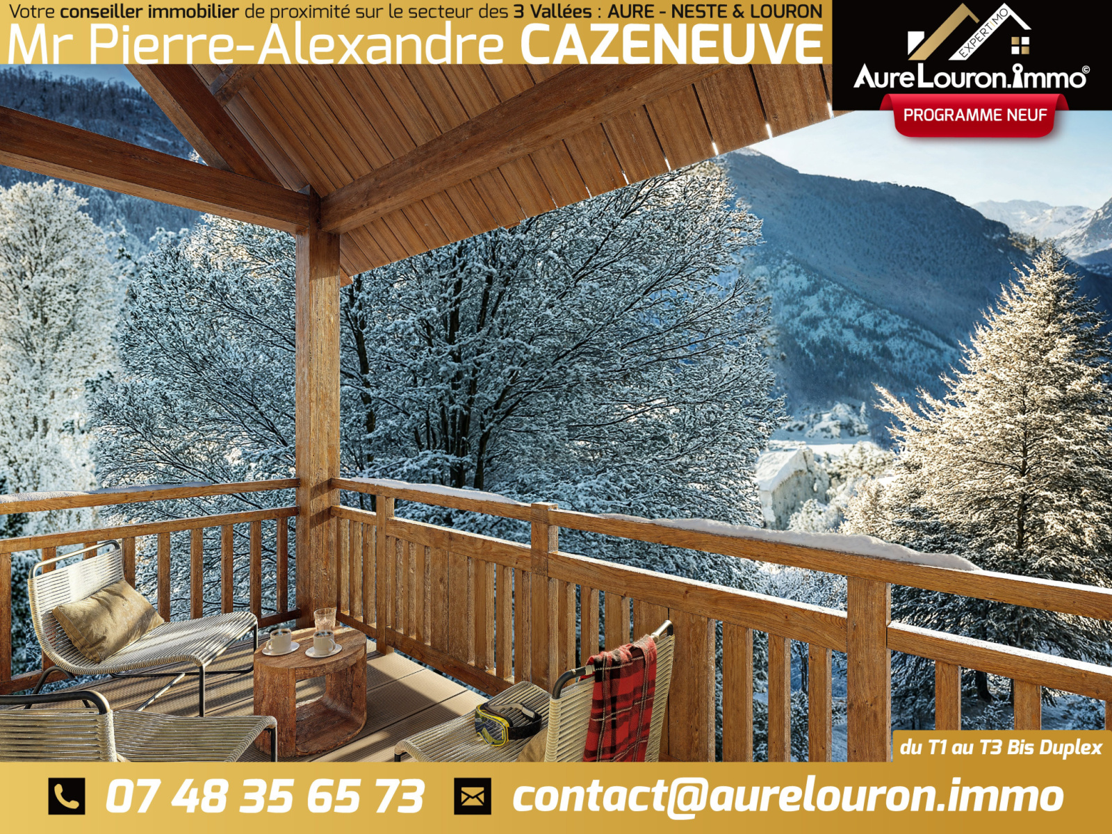 La présente annonce immobilière a été rédigée sous la responsabilité éditoriale de M. Pierre-Alexandre CAZENEUVE, agent commercial indépendant immatriculé au RSAC de TARBES n° 534818869, mandataire du réseau national EXPERTIMO© SAS (biens anciens) et PLUGIMMO SAS (biens neufs) et déposant de la marque « AURE LOURON IMMOBILIER » (INPI n° 4674932). Cartes professionnelles : EXPERTIMO SAS, n° CPI84012018000024015 (CCI Vaucluse) et PLUGIMMO SAS, n° CPI31022019000042849 (CCI Hérault), portant la mention « Transactions sur immeubles et fonds de commerce » avec « Non-détention de fonds » et « absence de garantie financière » pour l’activité de transaction. Assurances RCP : Orus n° HARCP0532138 et Allianz n° 59661778. Attestations de collaborateur (ADC) : n° 84012024000000432 et n° 34022025000004614. TVA intracommunautaire : FR86534818869.