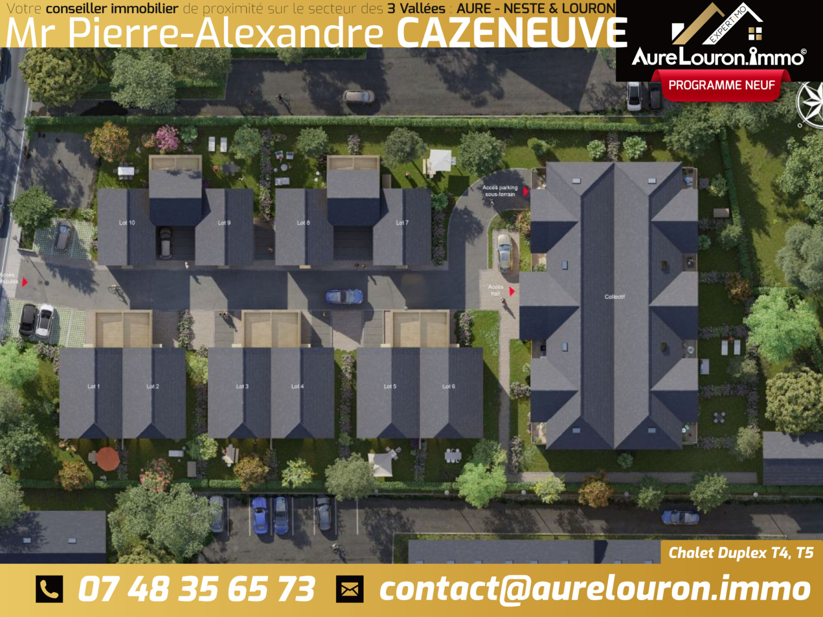 Le programme propose des maisons chalets duplex de 4 à 5 pièces, avec jardin privatif et prestations haut de gamme : pompe à chaleur individuelle, plancher chauffant, menuiseries aluminium, volets roulants électriques et finitions soignées. Une adresse idéale pour vivre ou investir au cœur des Pyrénées. Livraison prévisionnelle : 4ème trimestre 2026.
