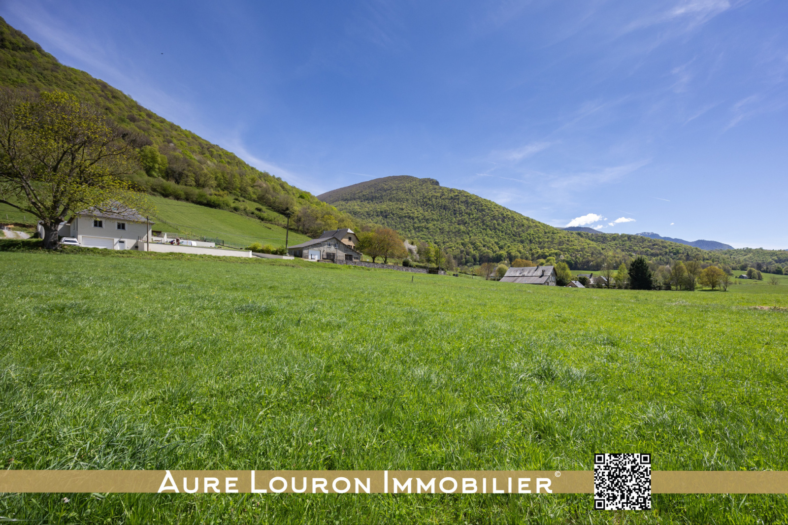 Aure Louron Immobilier vous propose en exclusivité ce beau terrain constructible d’une superficie totale de 1707 m², dont environ 900 m² en zone constructible (zone U2 du PLU), le reste étant classé en zone agricole.